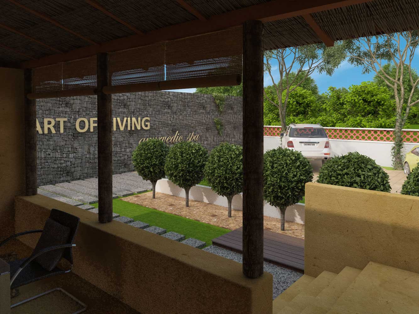 The Principal of the four blocks is the administrative block which houses the reception, consultation rooms, medicine preparatory labs, pharmacy and stores. One block is separate for dining and kitchen facility. The other two are for spa and accommodation for the staff respectively.