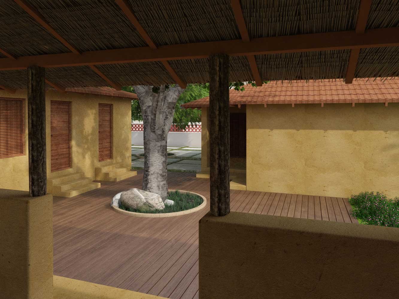 The central courtyard acts as the transition as well as social space and with a huge tree planned it should be a pleasant shaded space during the day. The idea is to bring in more landscape in this project inorder to connect with the naturalist nature of the spa. There is also a Yoga and meditation court where sessions could take place. All the blocks are planned in a manner to naturally ventilate and rehabilitate the space.
