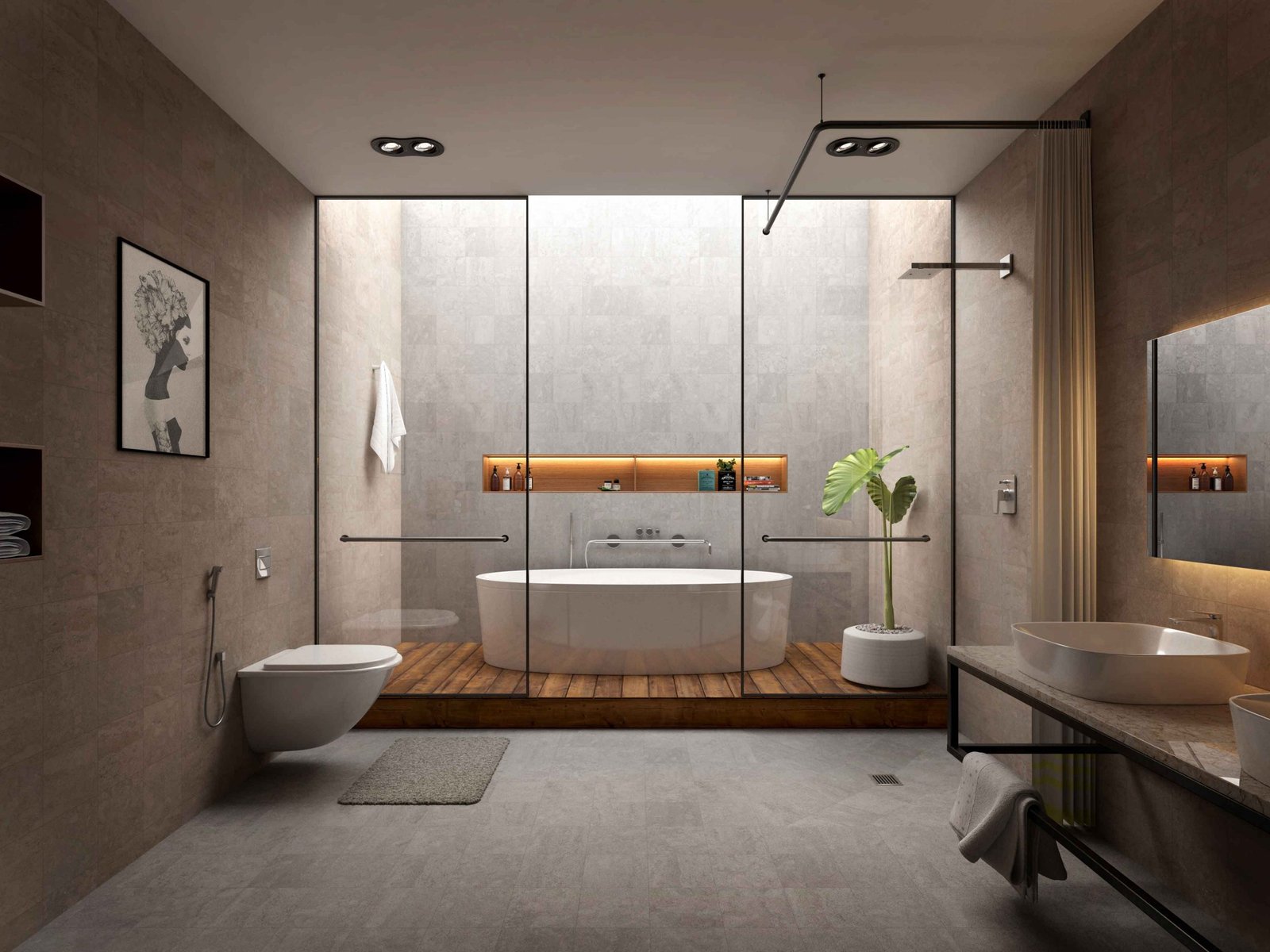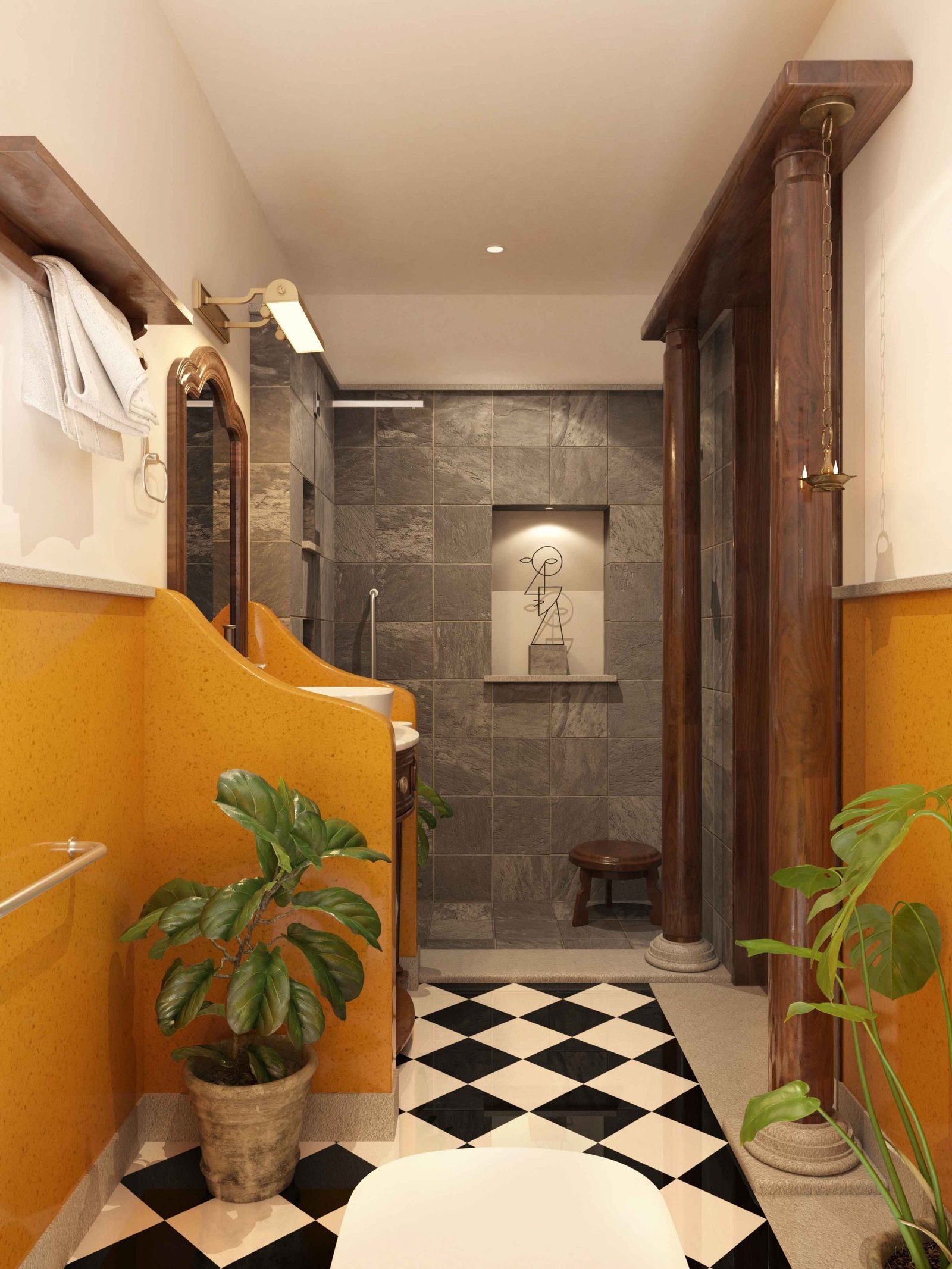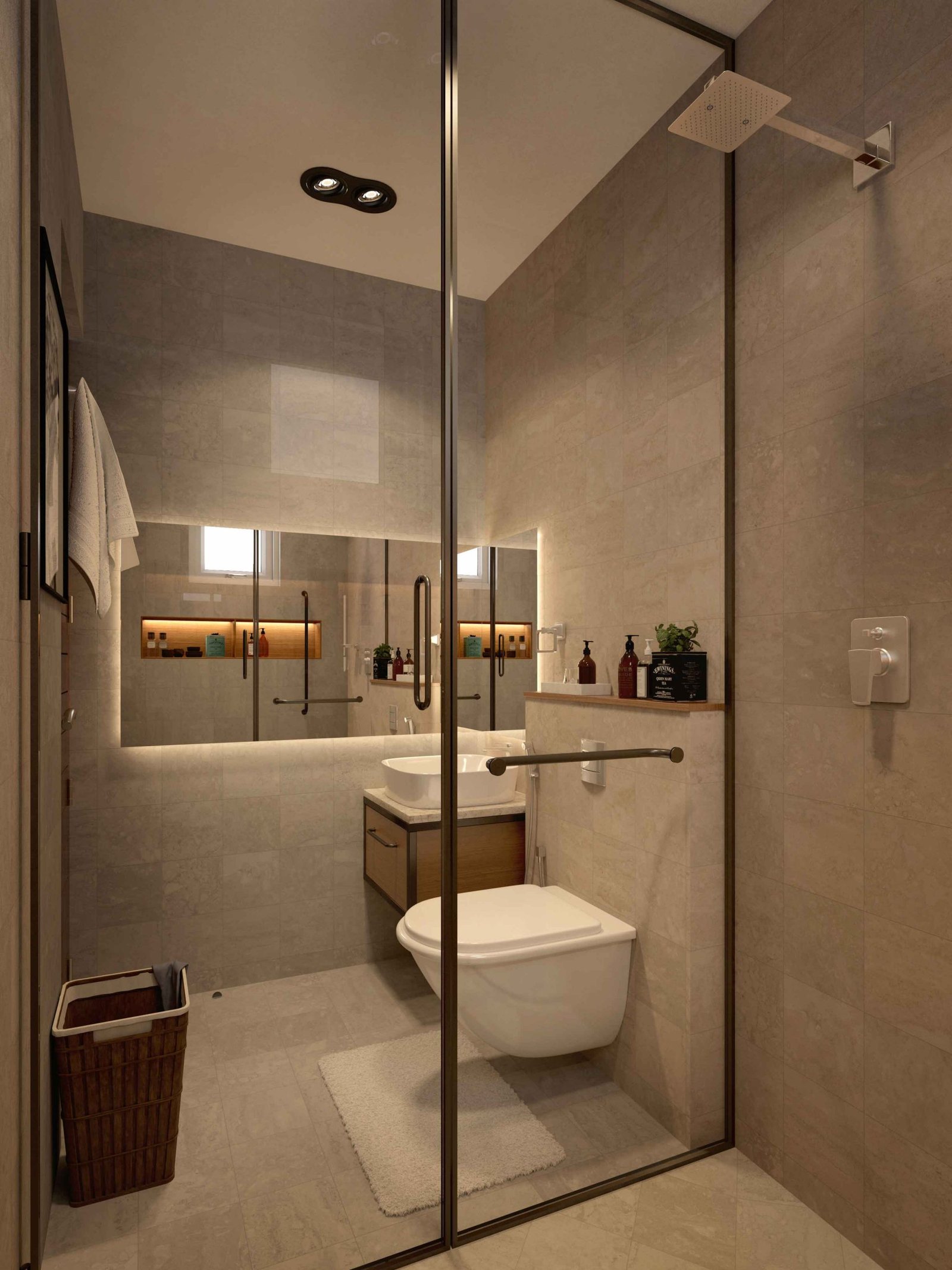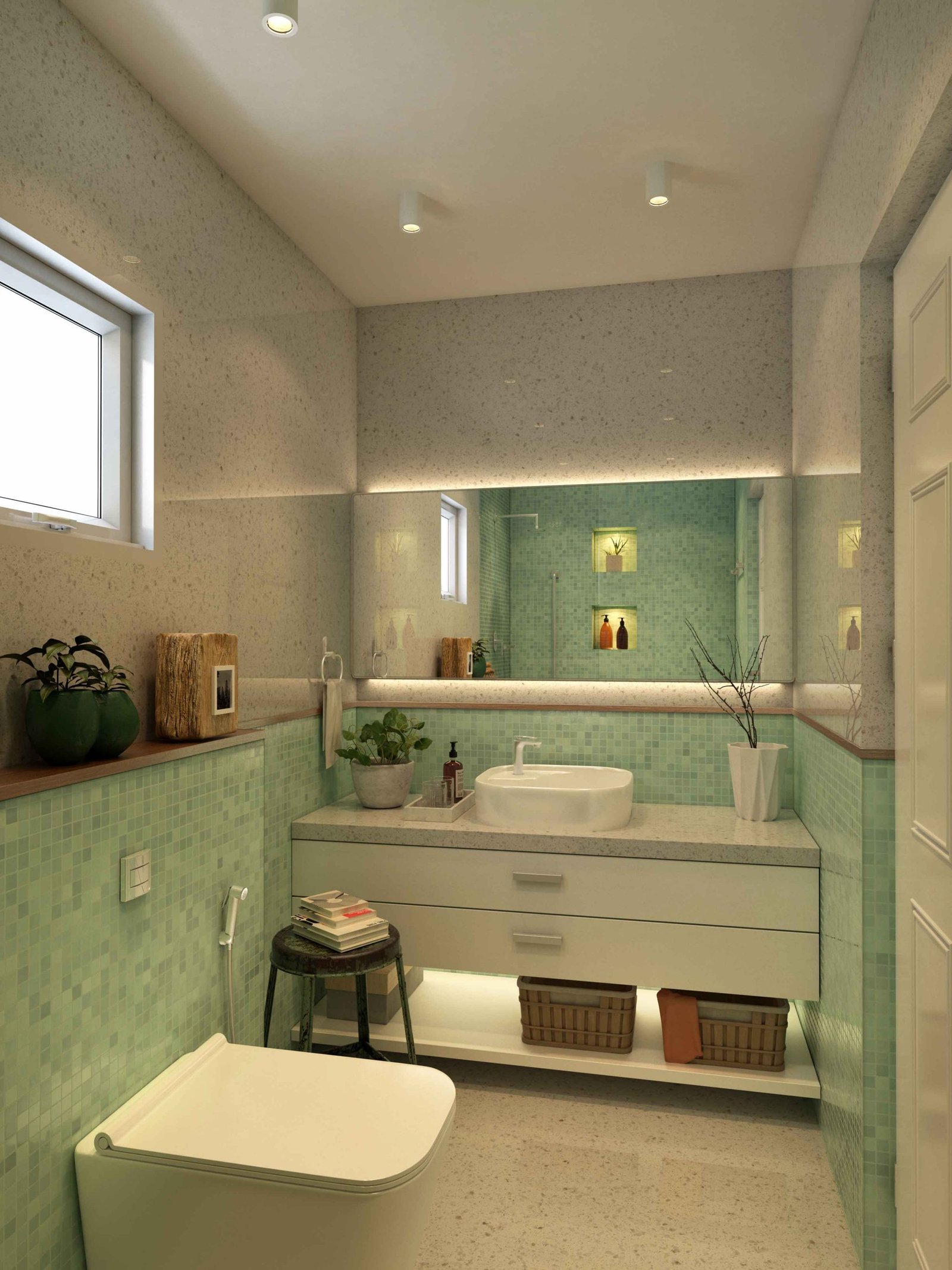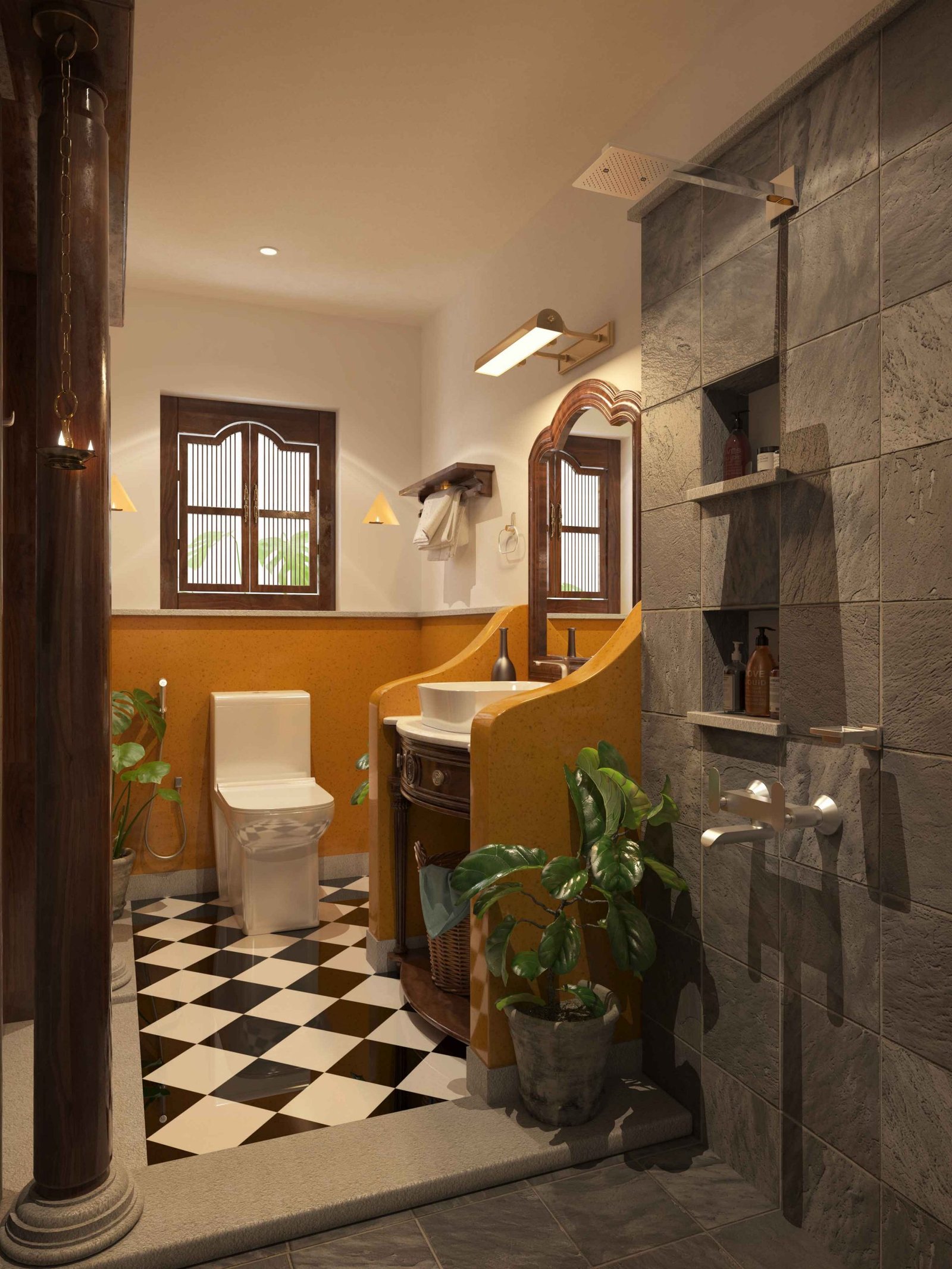 Asian paints one of the leading companies in India were venturing into sanitary ware , they had approached us to propose designs / renders using their newly developed sanitary ware , We were super stoked about this collaboration and went ahead and designed 10 bathrooms based on the theme and sizes they provided us , the themes were PERFECTIONIST, NATURALIST and TIMETRAVELLER. The design was proposed and after rounds of brainstorming with the asian paints team we had proposed the final renders for their catalogue/ brochure. The design ideology was to best fit the theme and their sanitary collection along with the ergonomics for elderly usage .