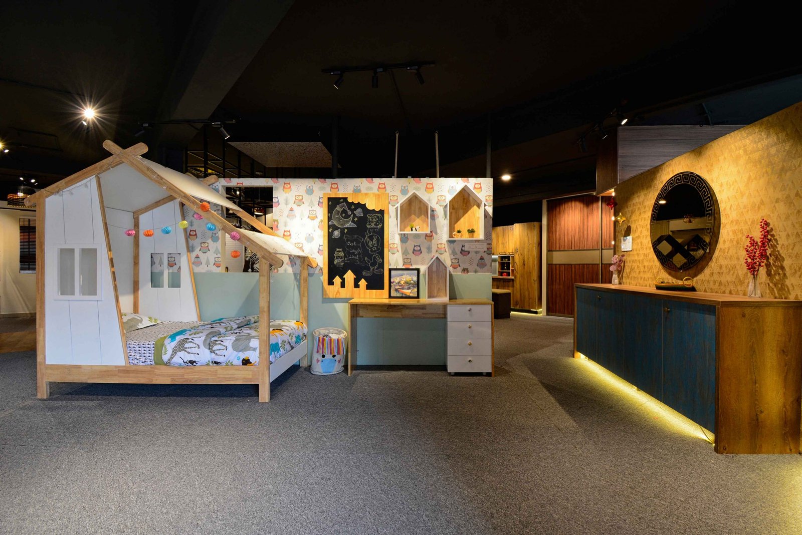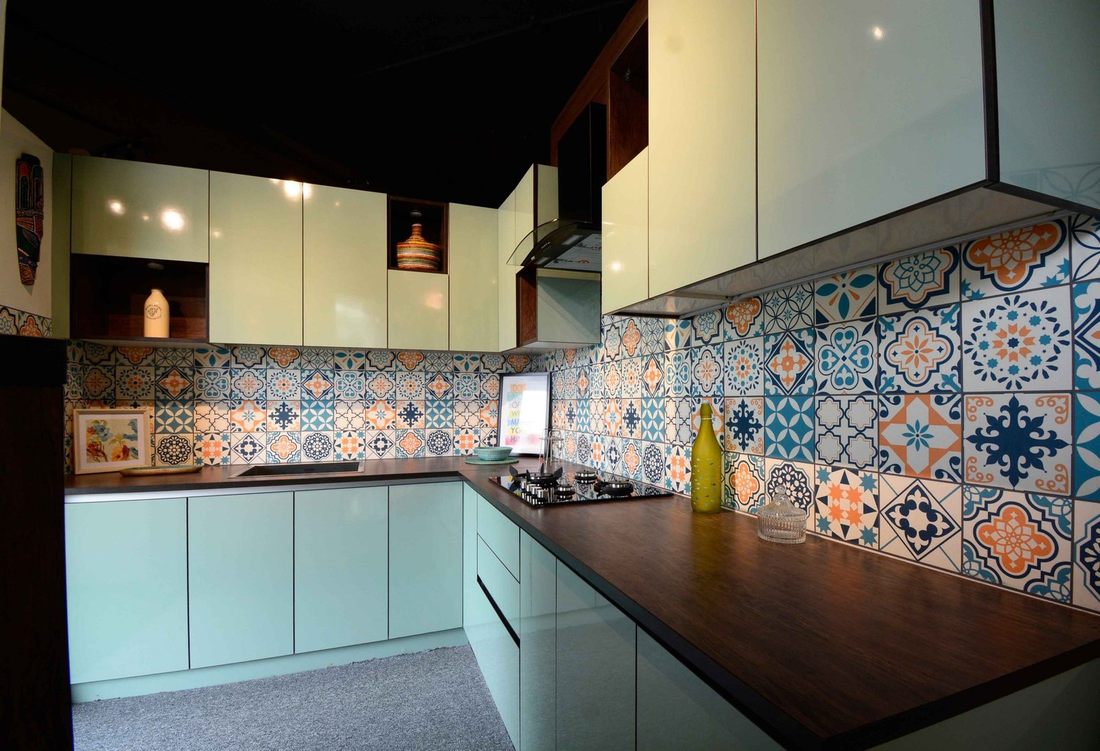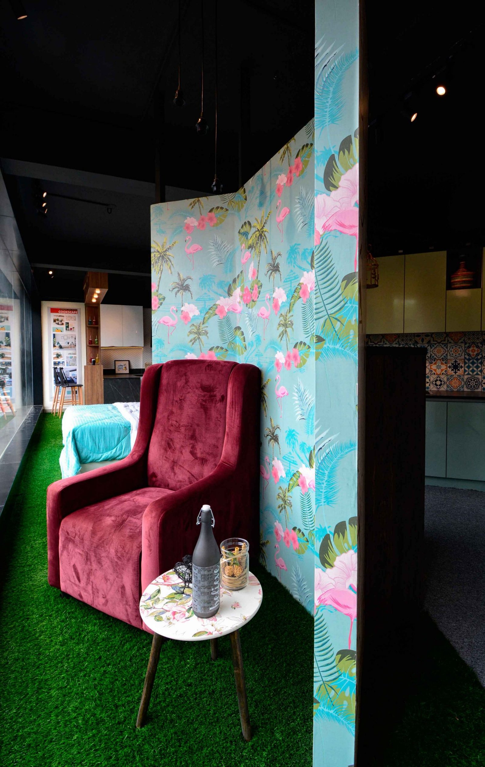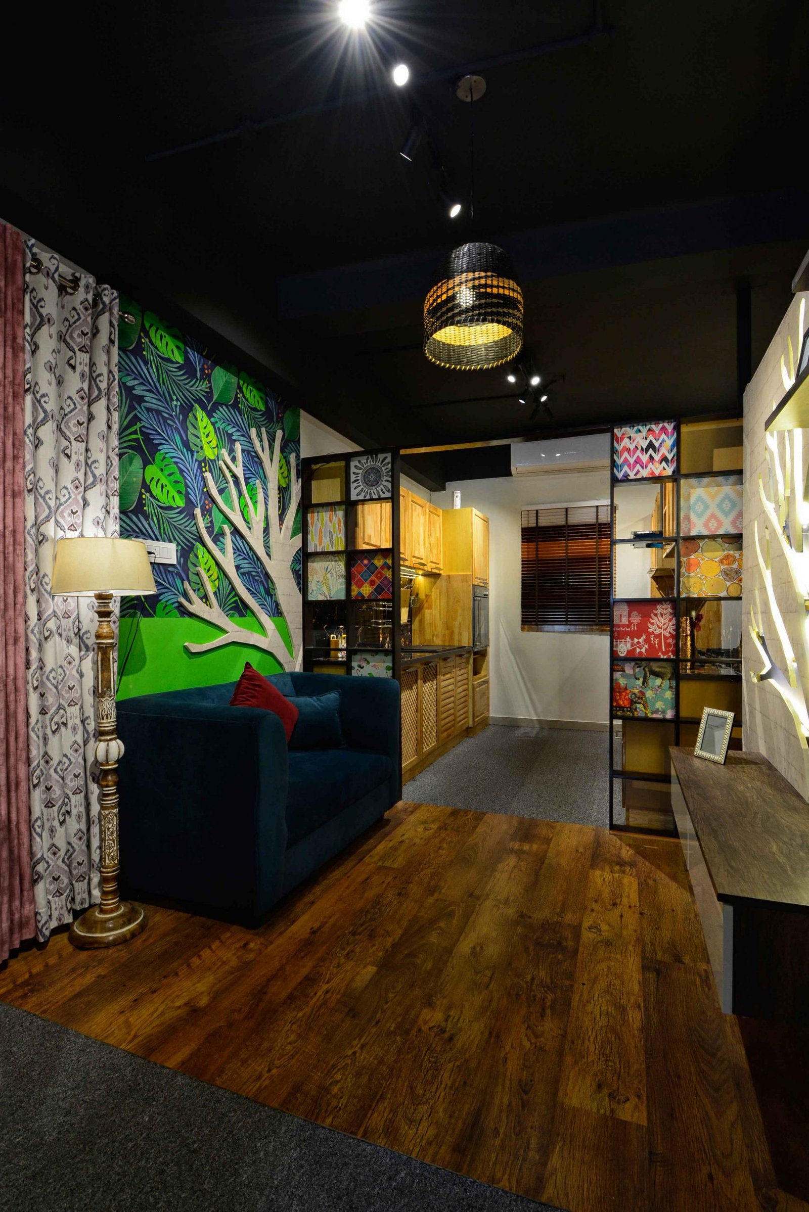 We were delighted when Cookscape approached us to design their new outlet in Coimbatore. Cookscape is a leading Kitchen and wardrobe interior studio based out in Chennai, they have an entire team for design to execution, and this made us feel special that we had been chosen to design their showroom. The brief was simple, to create maximum kitchen units and wardrobe units. We started off by removing all the walls and leaving the frame. The design ideology was to create multiple and haphazard corridors to create a sense of confusion for the user, the idea is to make the user seek new things at every corner or junction; get surprised with what is being used. Lighting colour palates were carefully chosen and detailed out to create a stark yet subtle contrast for a visual experience. Lighting was planned to set the mood at different time of the day, being in a small floor plate the design evolved to be not dumped with everything but still looks like there is scope for more, meaning that anything is possible through design.
