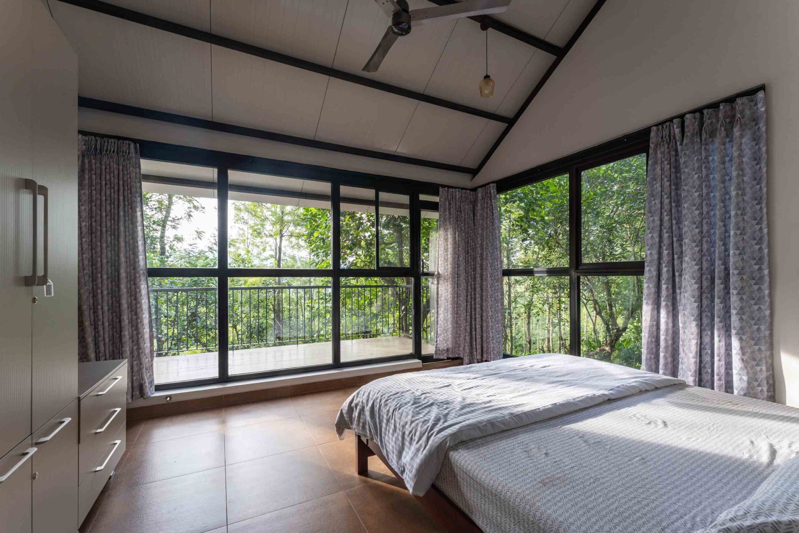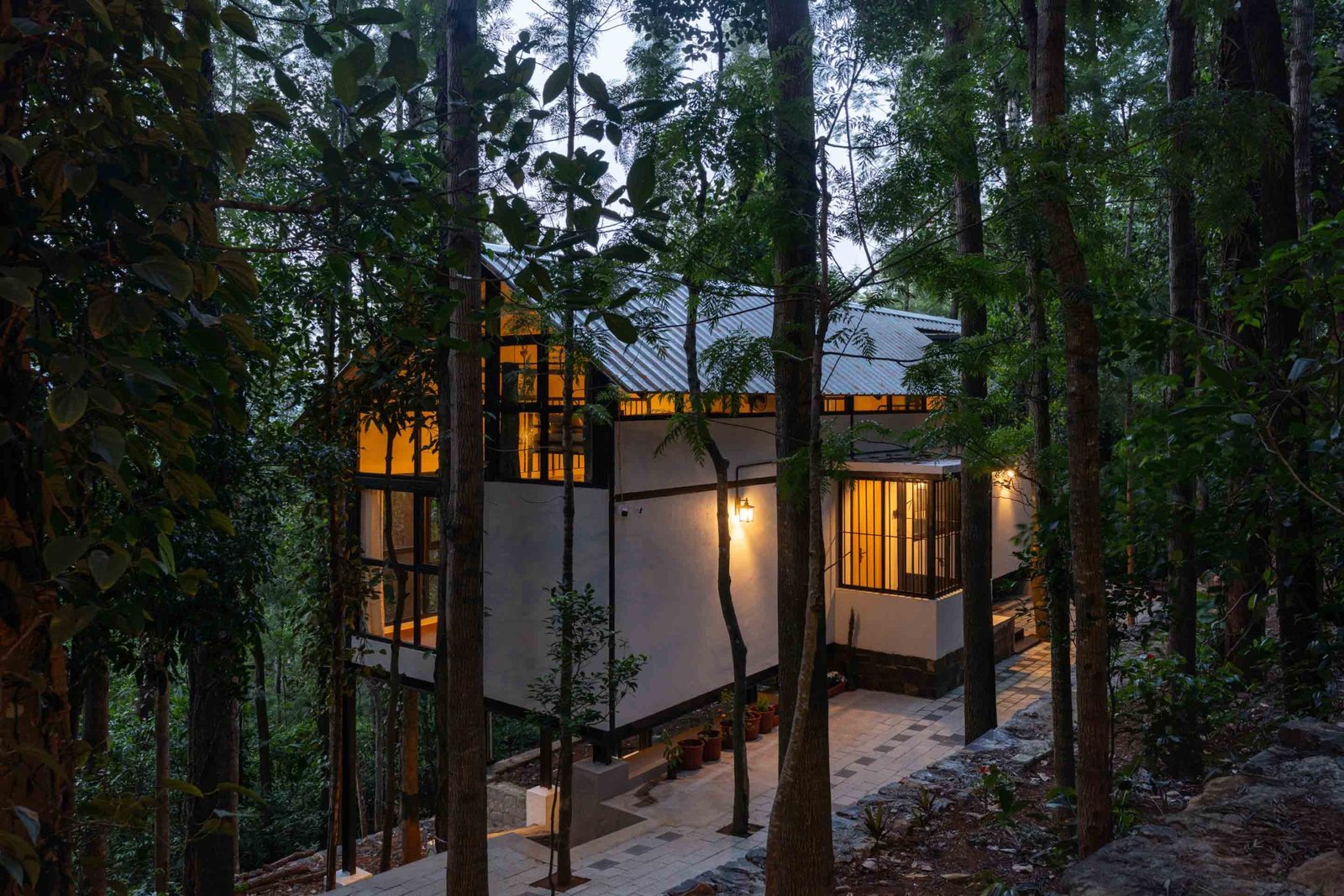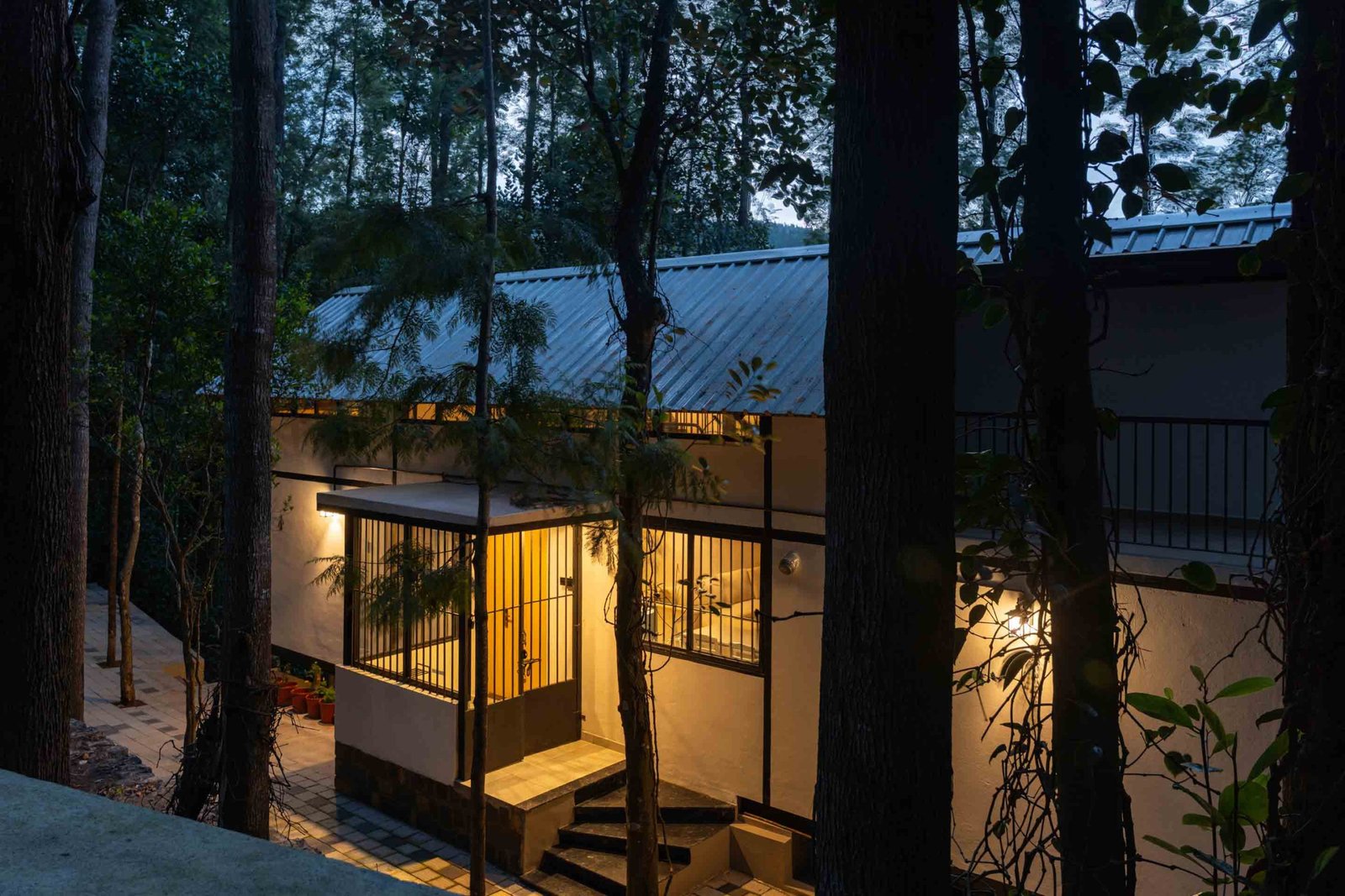 This Scandinavian-inspired, steel-fabricated home is located on a 1,000 sq. mt. property in Yercaud, set on a south-to-north slope (from road to valley) with a 20-degree gradient, surrounded by 84 mature trees.