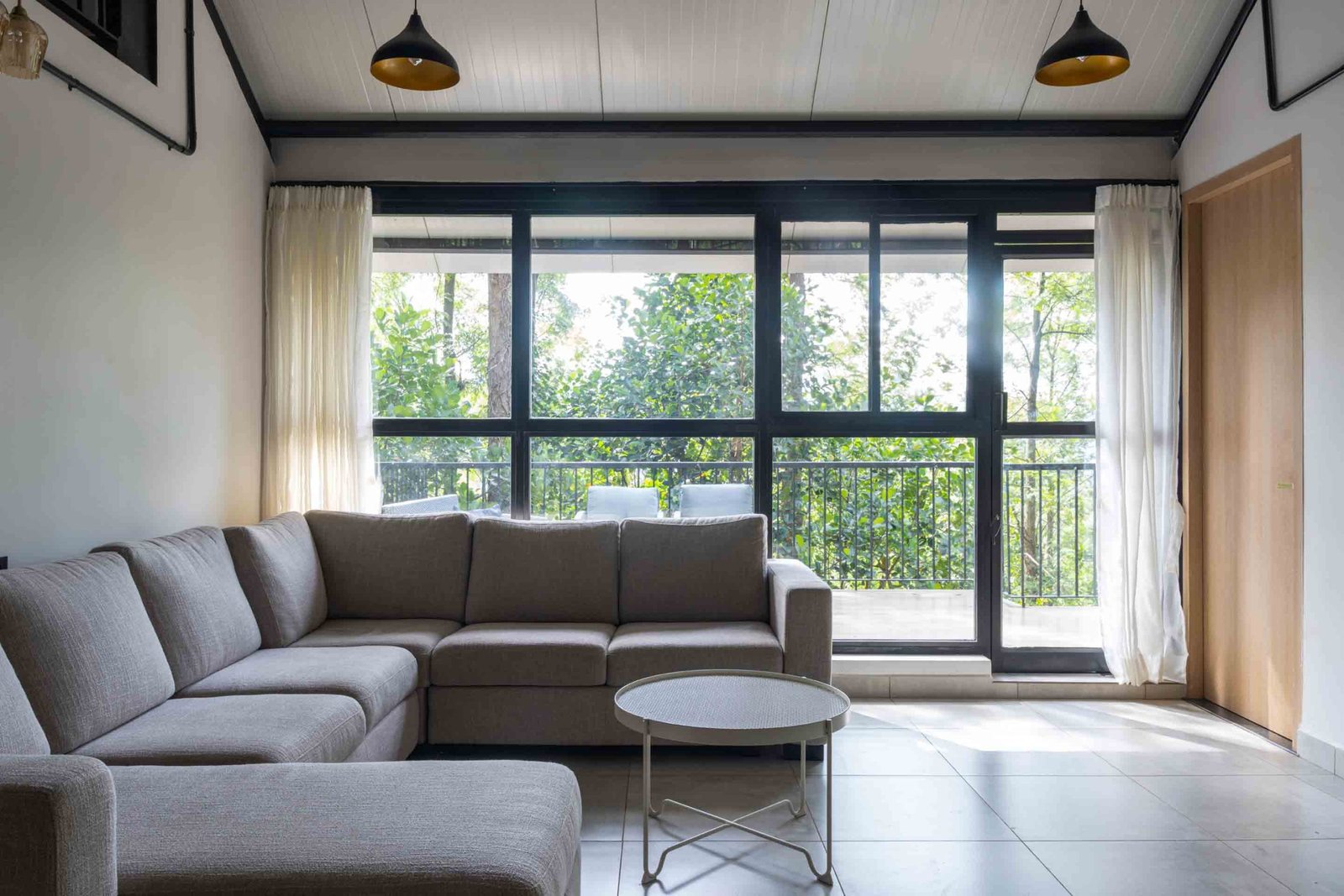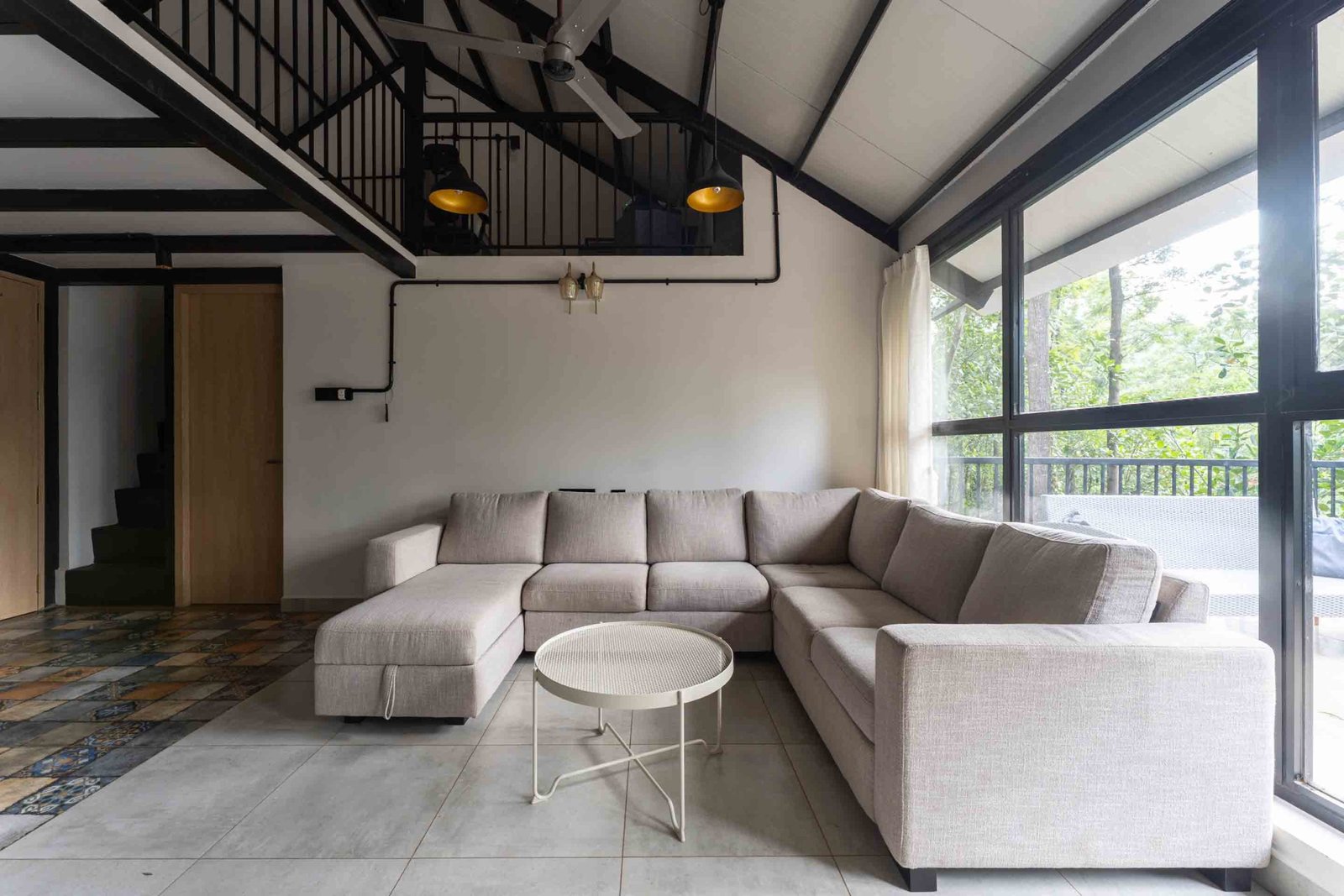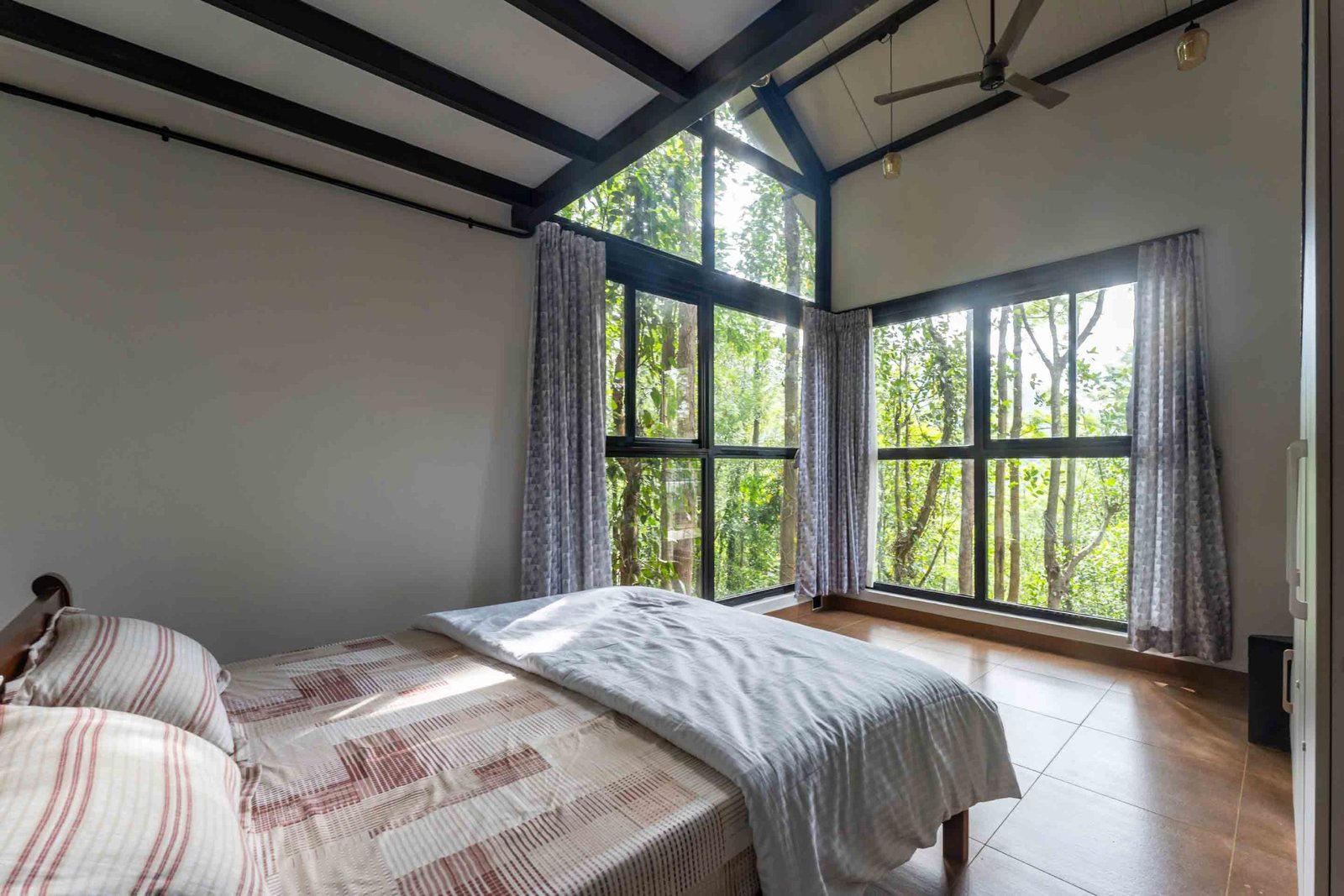 This Scandinavian-inspired, steel-fabricated home is located on a 1,000 sq. mt. property in Yercaud, set on a south-to-north slope (from road to valley) with a 20-degree gradient, surrounded by 84 mature trees.