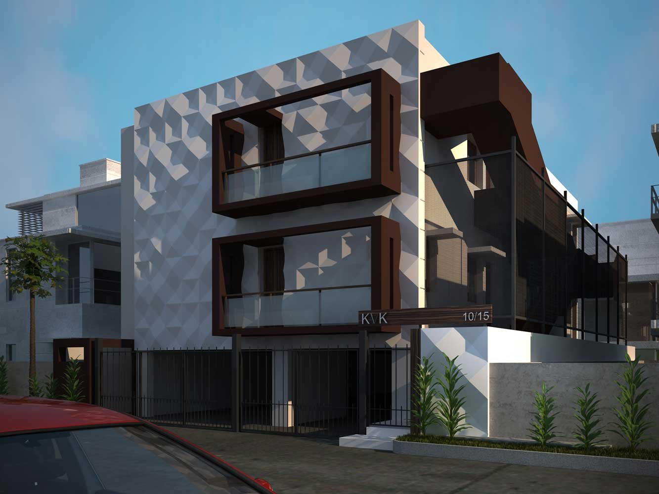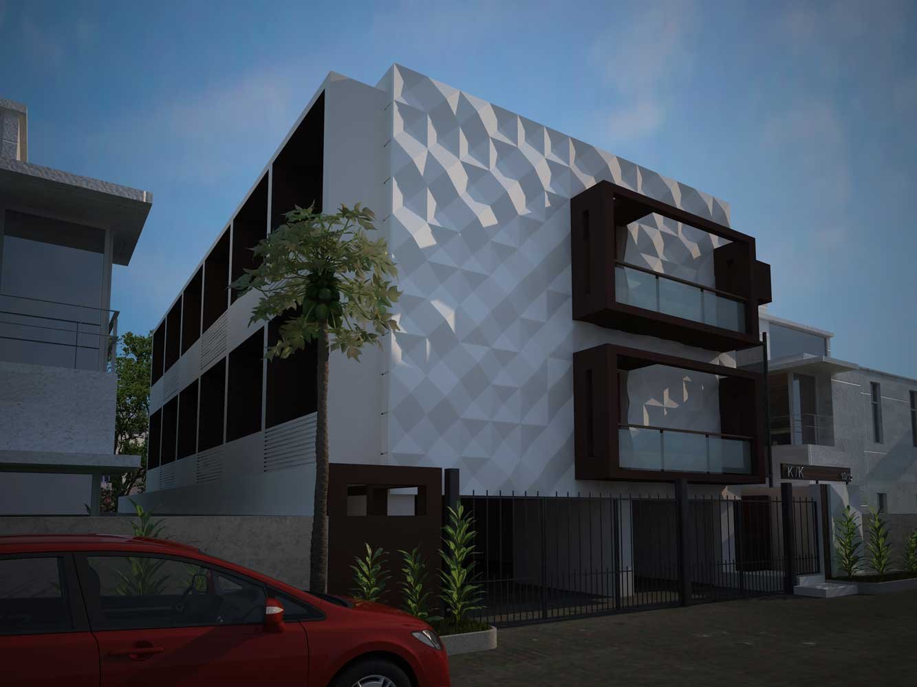 The project a proposal for a local builder, who required a 6 flat apartment with individual car park. All six units were designed typically and according to vasthu.