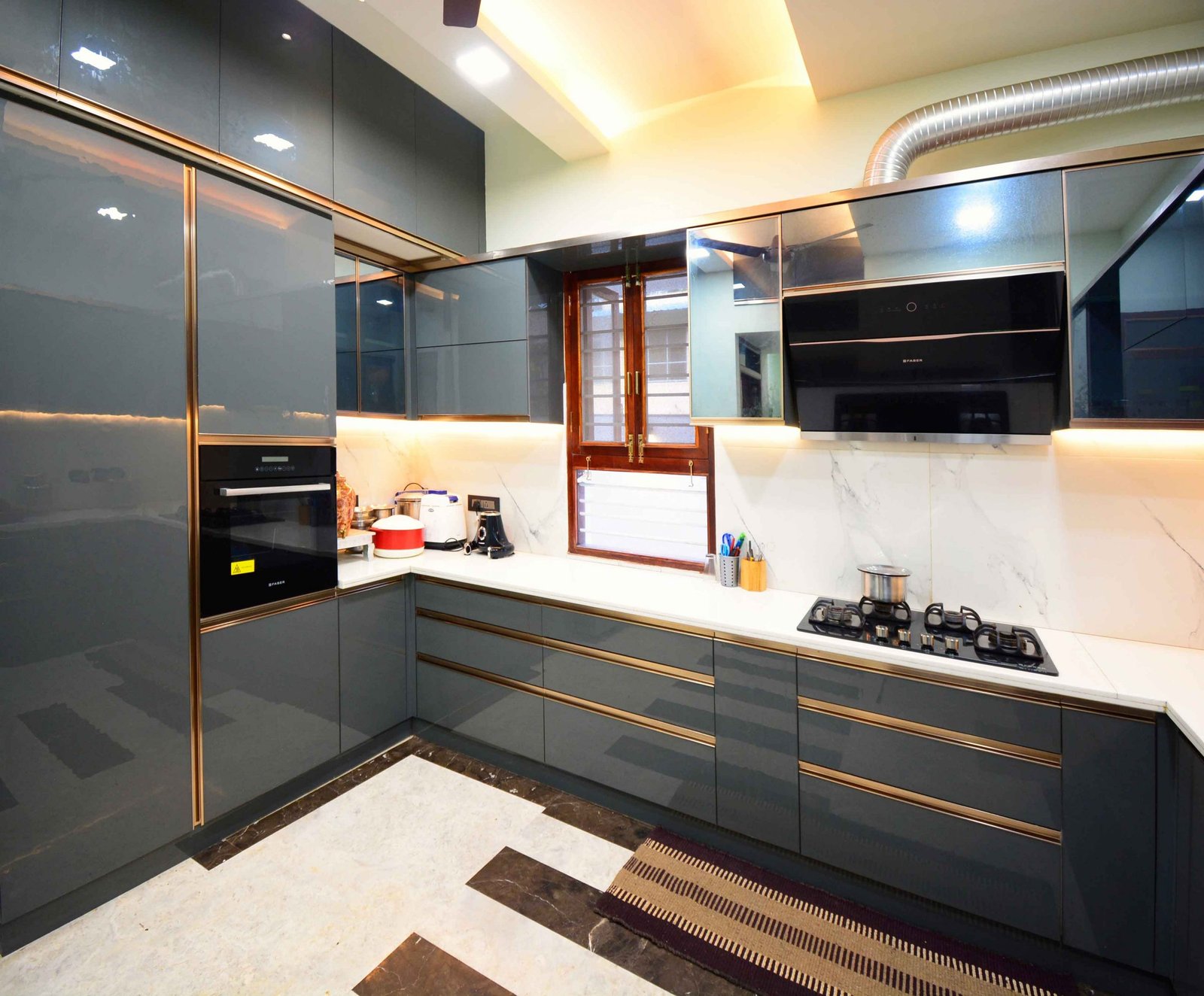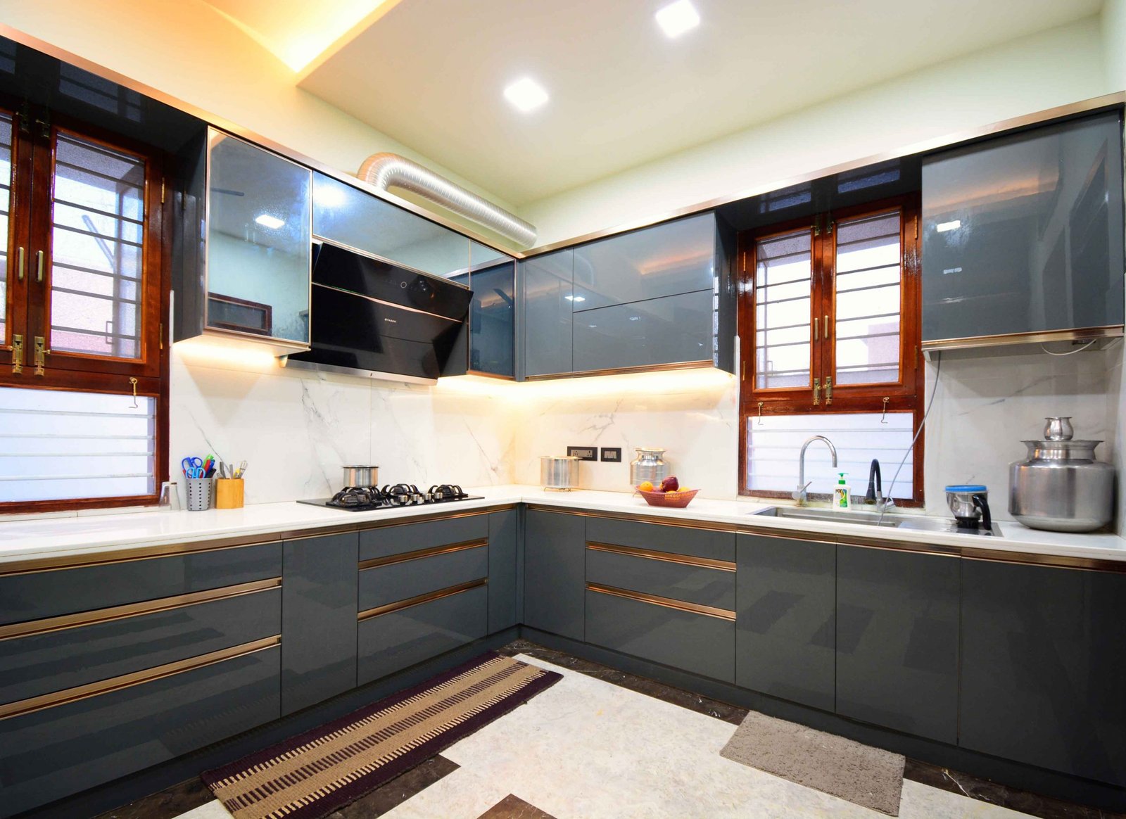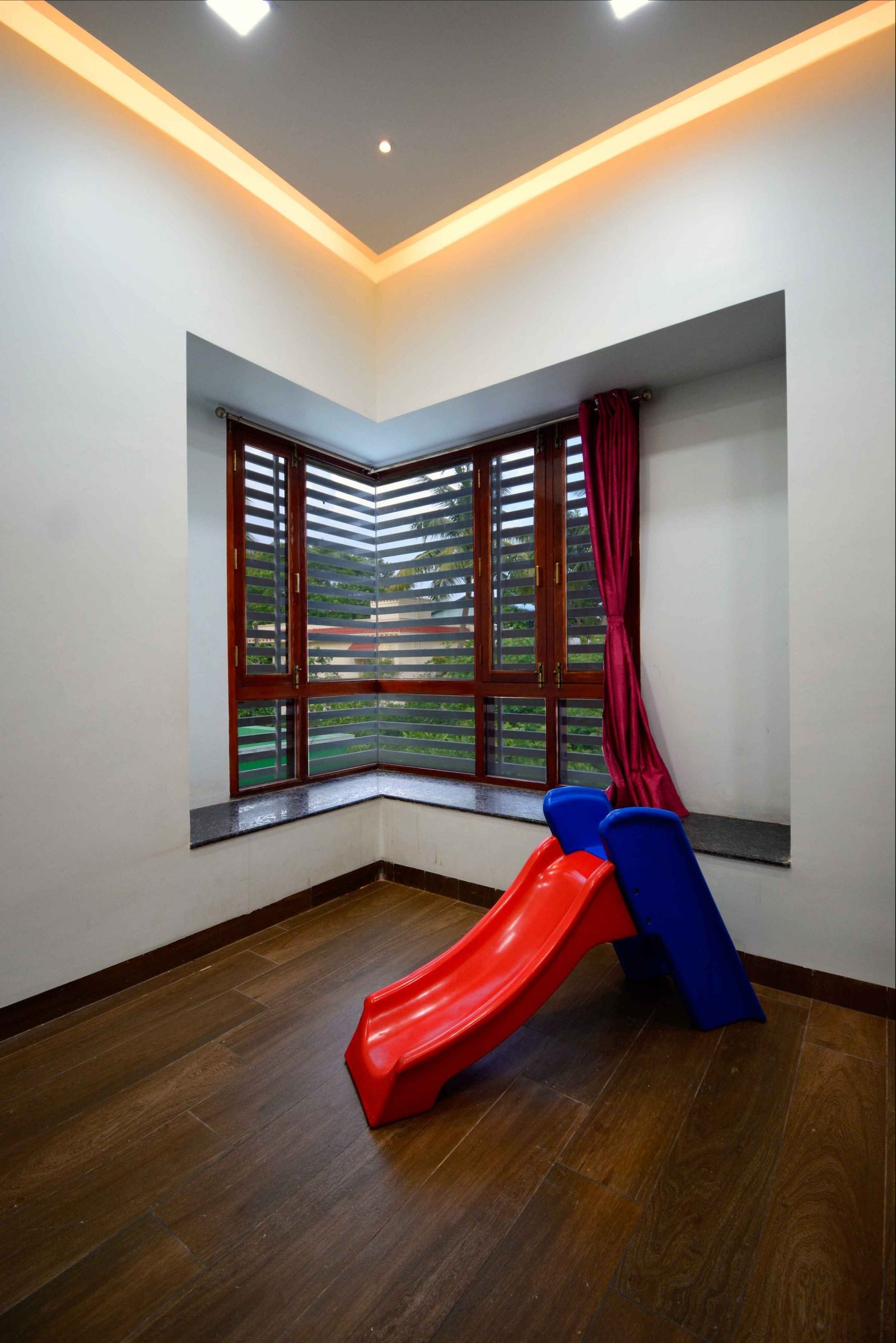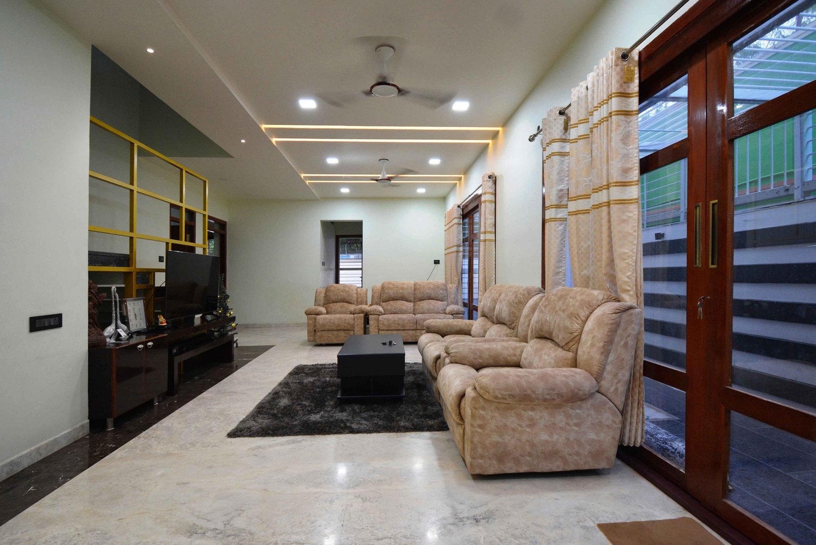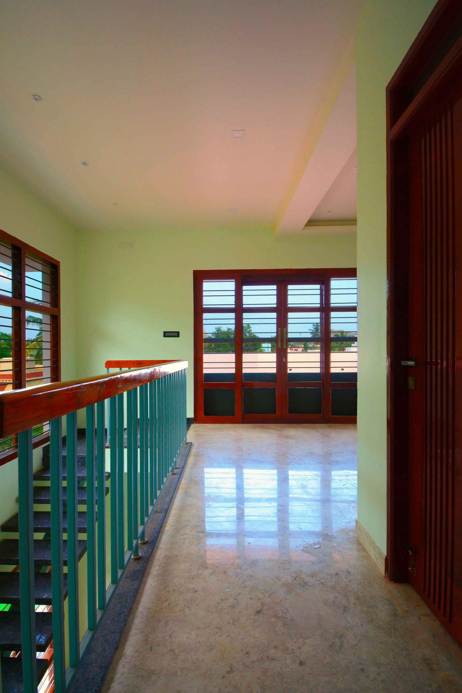 This Modern-Minimalistic home was designed for a joint family in the spiritual city of Thiruvanamalai. The planning of the house was challenging since it had to accommodate the entire family’s requirement and it had to be as per vasthu as well. The house is a six bedroom house with open terraces and balconies at every level , on the ground floor the setback spaces were designed as outdoor seating and service areas. the family enjoyed natural light and ventilation , for which we have provided long French doors and windows. the road facing bedrooms come with corner bay windows to make the rooms appear larger and to maximize light inside and proving view outside. The facade was kept simple and minimal with use of white and grey shades for the exterior. The plan is simple with the living , dining , kitchen and parents bedroom along with lift on the ground floor, the first floor accommodates  three bedrooms two balconies and a family space , the top floor has a single bedroom with balcony and a lounge opening to the open terrace.