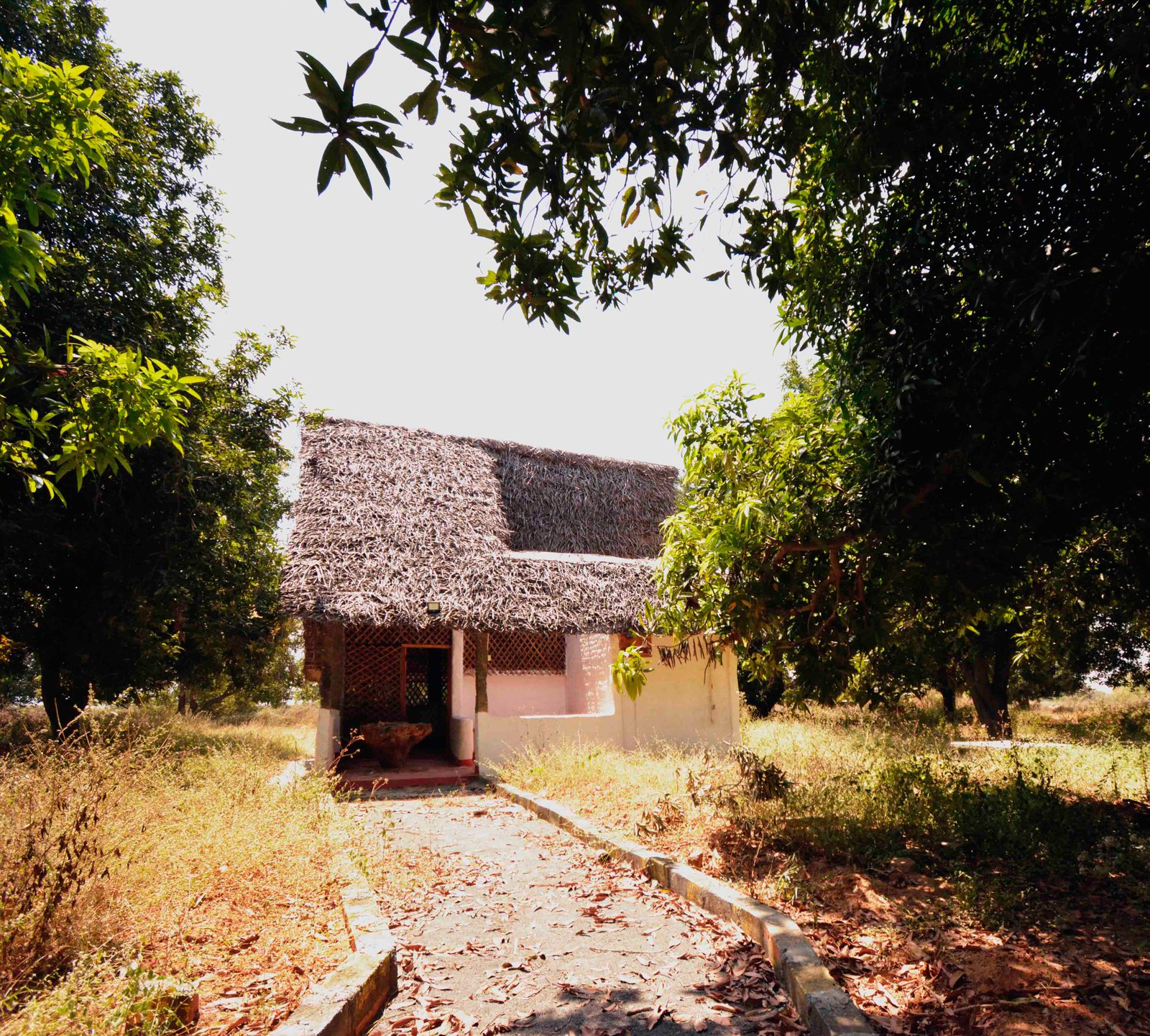 A couple into organic farming wanted a cabin in their farm that they could use for dining and relaxing when they were at the farm. The vision of their practice was organic and they wanted to build something out of natural materials, leftovers from previous constructions at the farm and something that is less harmful to the environment. Since earth was available in plenty at site we went in for an earthen construction technique of cob and rammed earth, for roofing we used bamboo and thatching. The ground floor had a small living dining and pantry with a toilet and a ladder leading to an attic on top for resting. Granite columns were locally sourced to bear the load of the attic floor and roof structure. Bamboo lattice work was made surrounding the living areas to have the view of the farm from inside and the overhang of the roofing was extended to cut of sun angle and provide less sun glare during hot summer. The flooring on the ground was oxide flooring; the curb stone for the pathways, the furniture out of fallen trees and storage made out of iron rods from previous construction in the farm were utilized. The earth walls were plastered using mix of mud and cow dung to keep away termites and creosote oil was used to treat the bamboo. Overall the project was our first step into ecological design and construction so there were a few compromises and a lot learning and experience that we would take forward for delivering more challenges in the future.