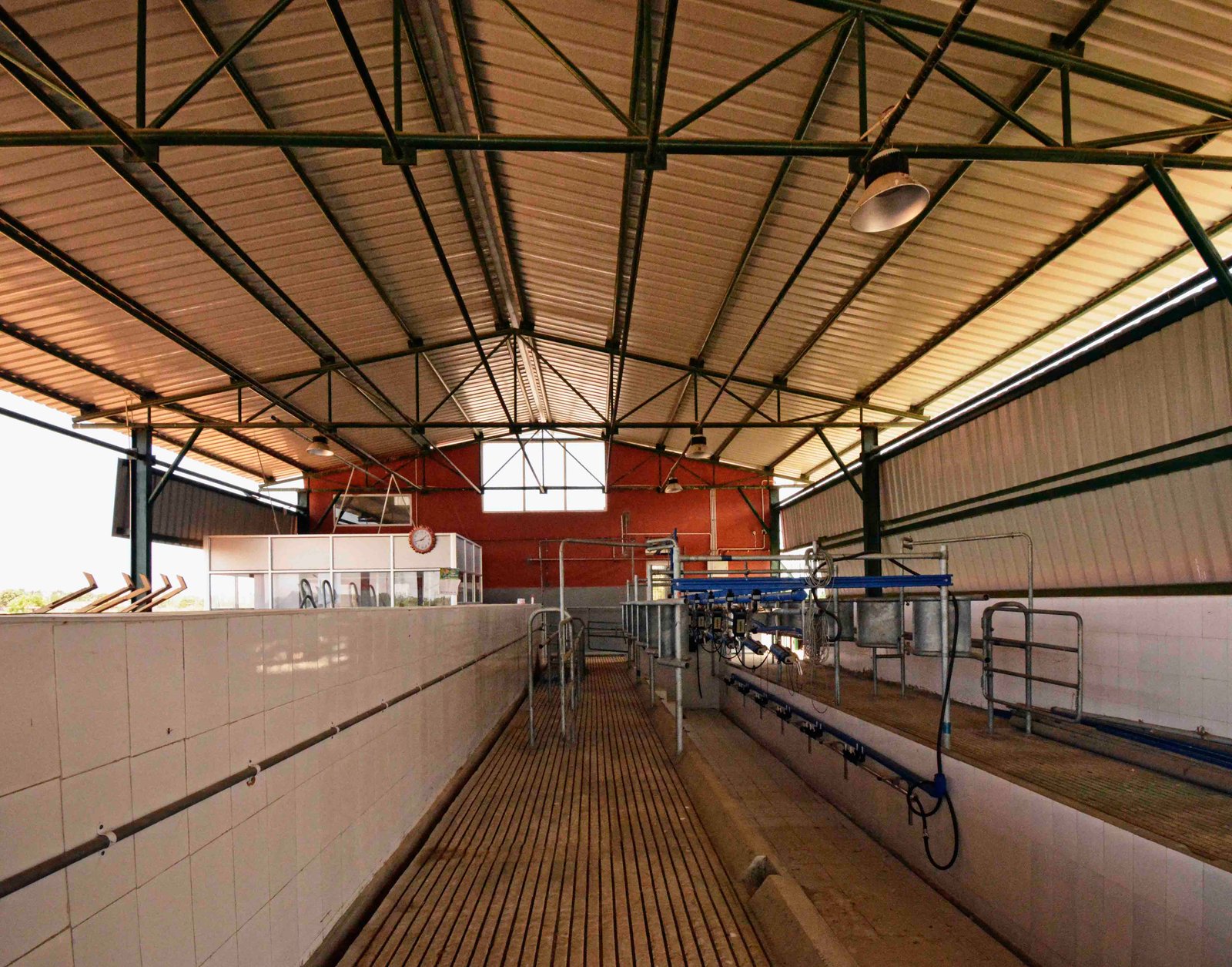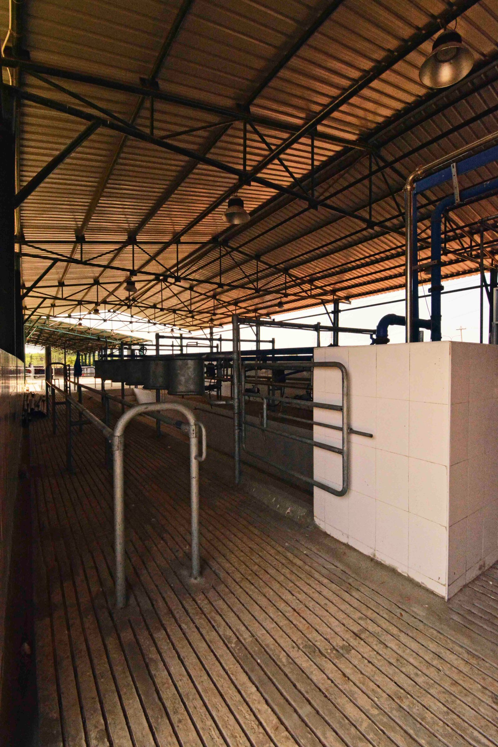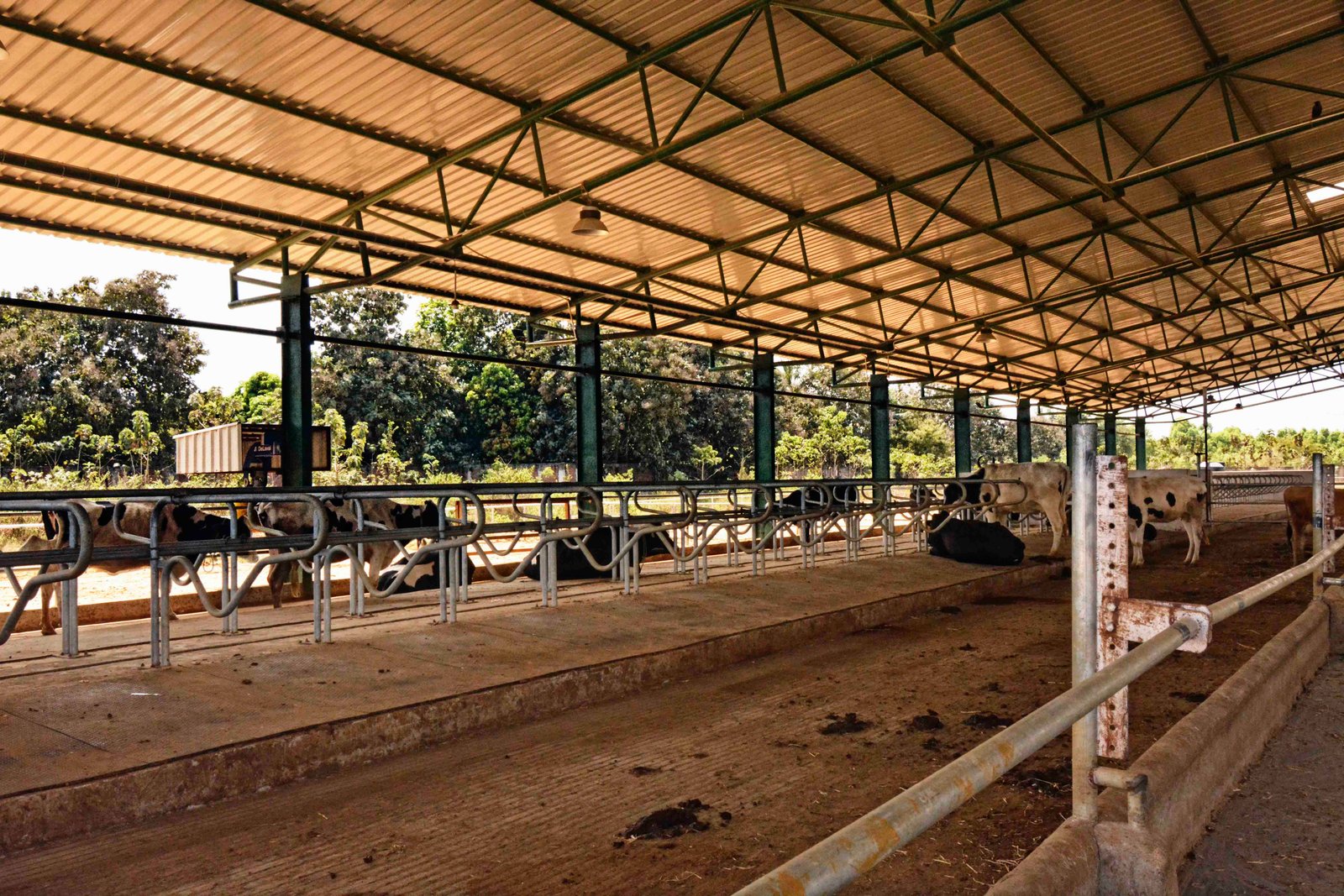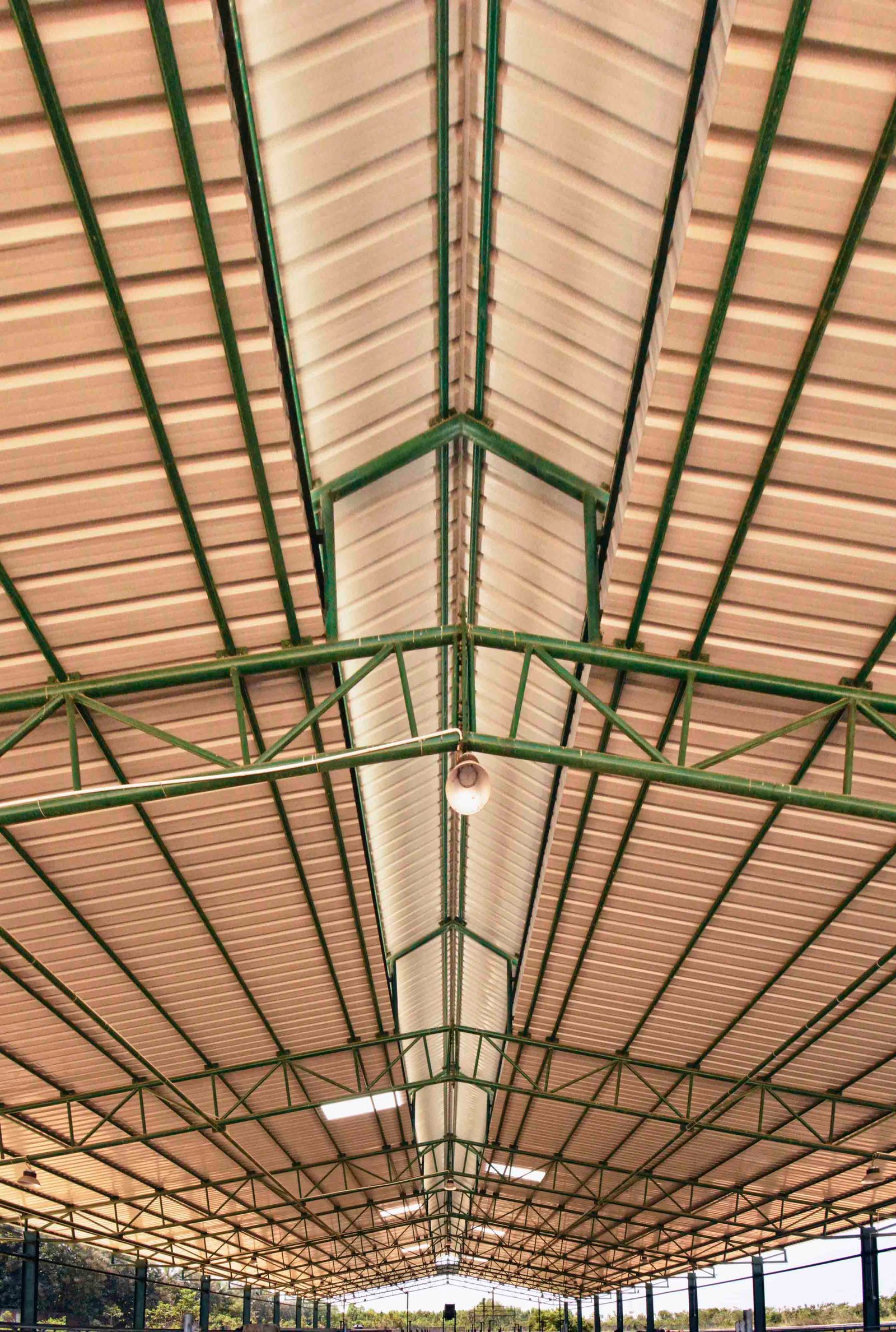 An organic dairy farm in the outskirts of Chennai for about 150 indigenous cattle was set up in about 5 acres of land; the project was developed under the guidance of DELAVAL. The requirement was two shelters that had to be designed and fabricated to suit cattle feeding breeding and milk production with the idea of using very little man force and easy logistics. The layout had to be cattle friendly aiding maintenance and management of cattle. Of the two units, one unit is where the milking process is carried using machinery and directly fed into the storage and packing facility, and the other larger unit for the feeding and housing of the cows. The structure is wide span with no central vertical support and the truss being designed using tubular sections and columns of ISMB section’s to minimize cost. Groves on the floor were done by placing fabricated grills on laying of concrete for easy drainage and maintenance of animal waste. And the roofing is of GI sheets.