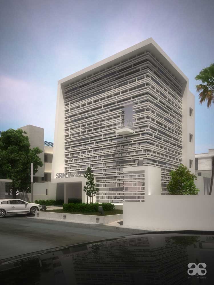 The idea was to design a building which is transparent as well as barred. A monotonous pattern of MS sections for the exterior and to have it completely glazed from inside is to create a sense of visibility from inside but not from outside.