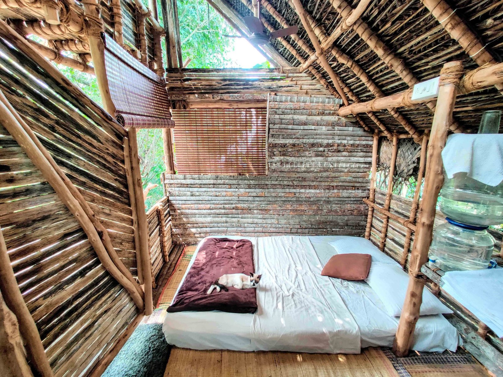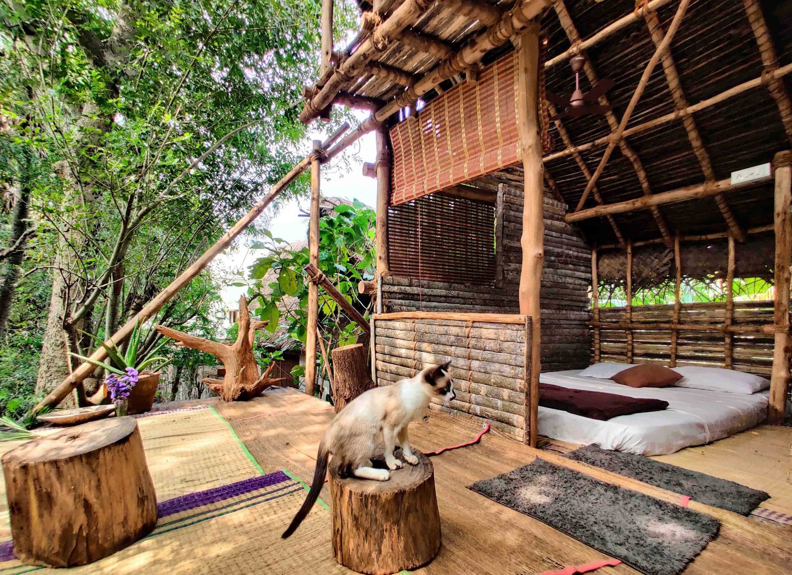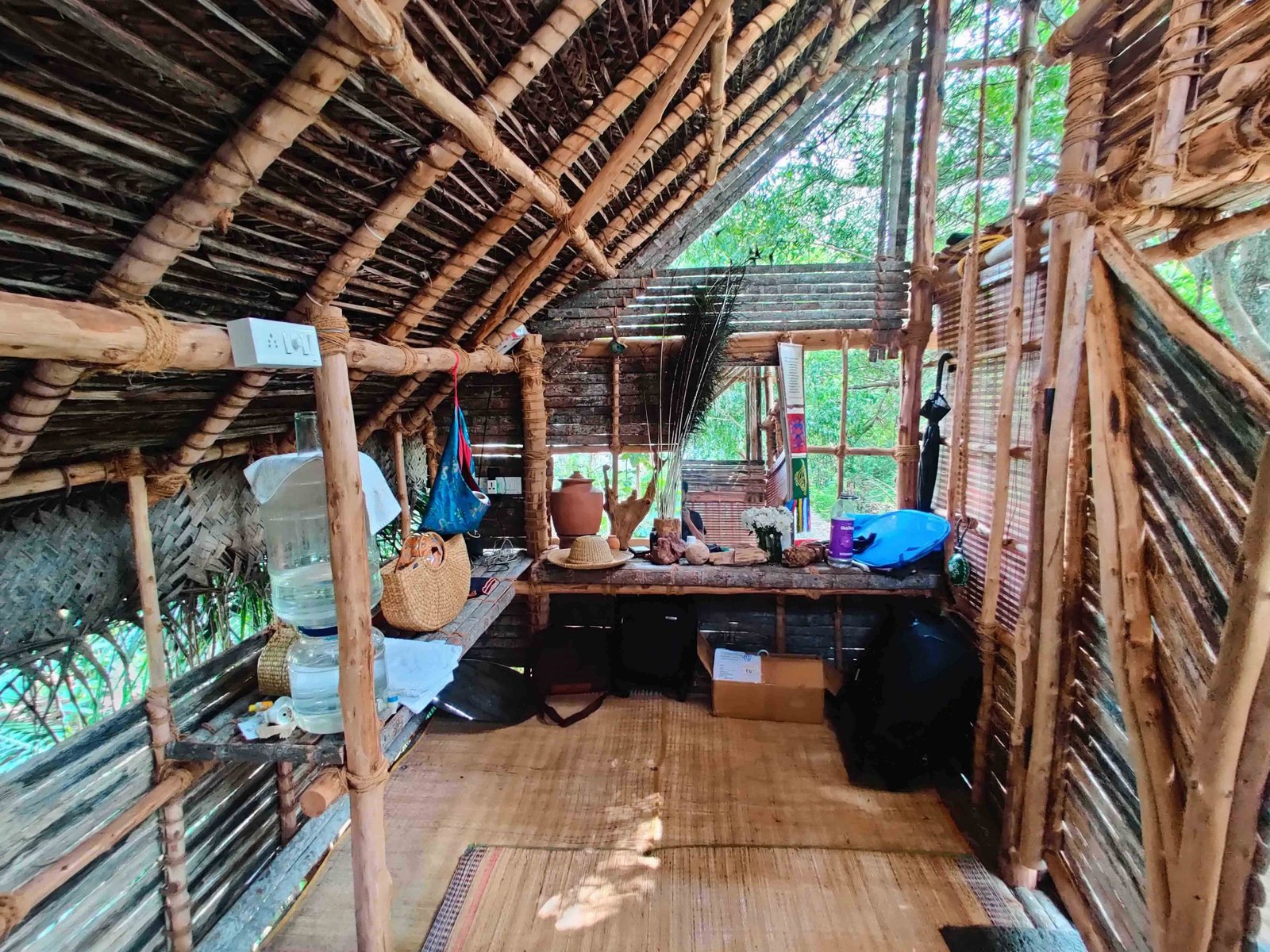 When you want to make less impact on the environment , you want to build with natural and locally available materials , we were fortunate to design and contribute a tree house for our client who wanted to connect with nature closely . The setup had to built with very less intervention with respect to the site area, For which we chose a tree near the compound wall and used the compound wall to support the balcony and house the open toilet and shower. The Setup is simple with a sleeping cum working place , opening to a deck / balcony with a hammock. with open views of the forest around. it was supported on granite pillars and the compound wall and was made out of casuarina tree logs and thatch roofing.