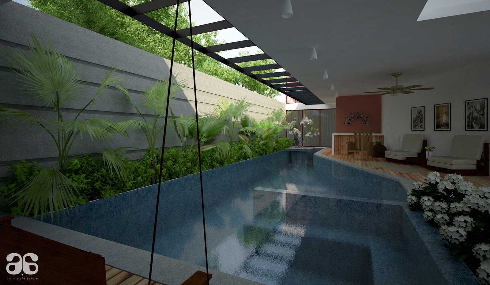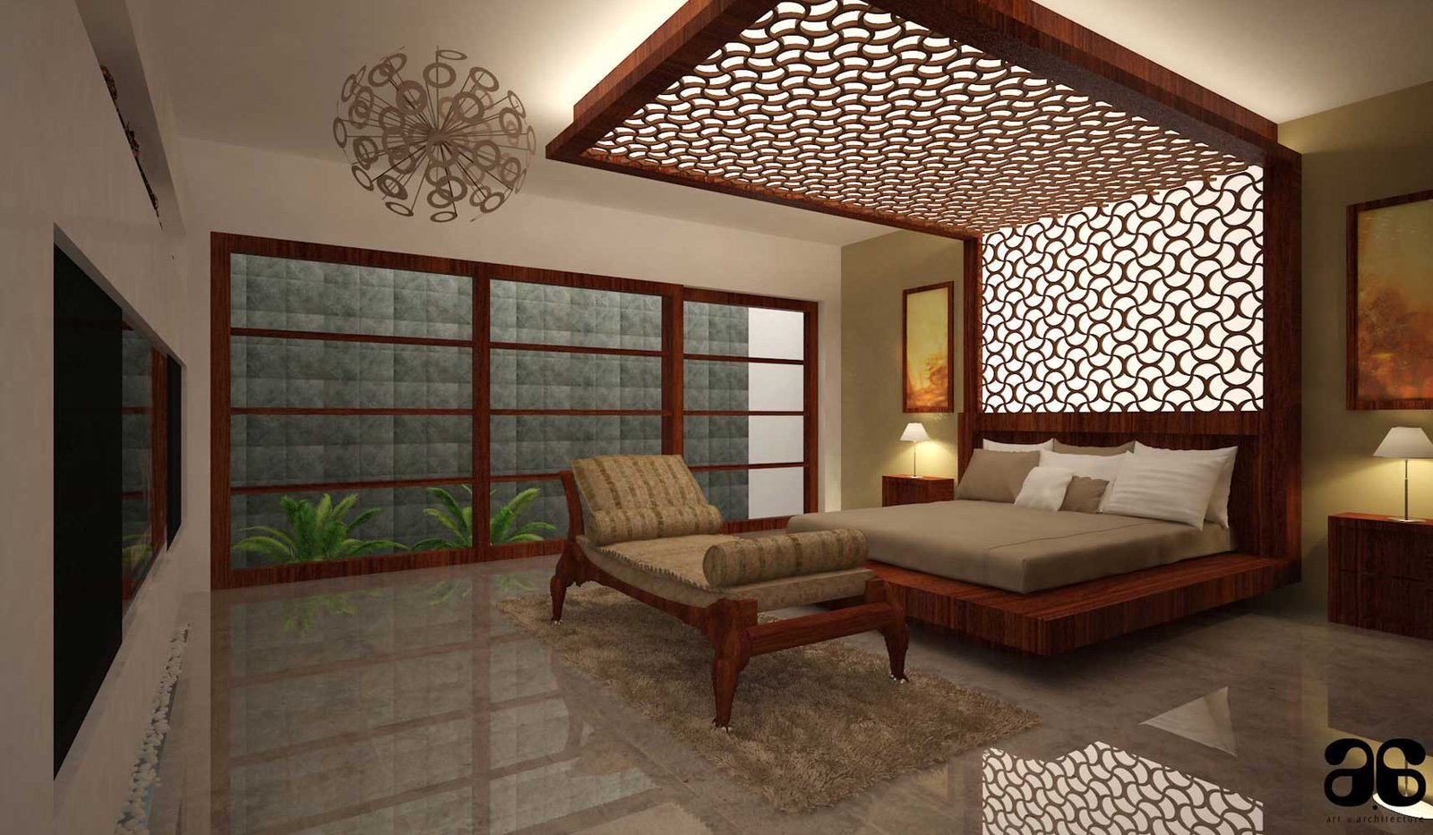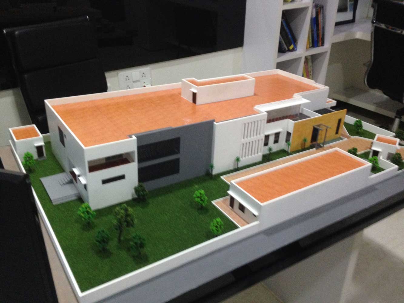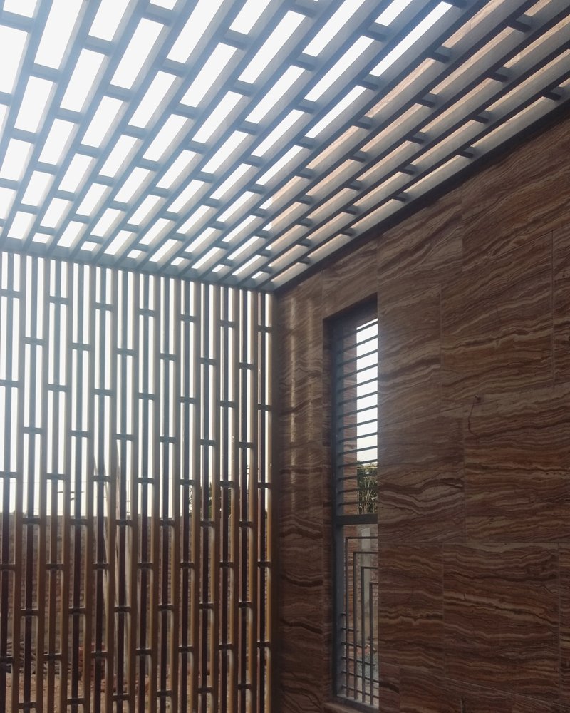 The house is a 9 bedroom bungalow for a joint family , The requirement was to build a house with a very posh and luxurious statement. Covering large areas , The spaces are designed to link with courtyards or gardens both inside the house and from outside. The pooja room comes with a specially designed water art installation which when squatted at three feet height appears to bring the alphabet Om in Tamil.The house comes with a partly covered swimming pool , hometheatre, dedicated garden for growing vegetables, gym and spaces for family activity and social life.