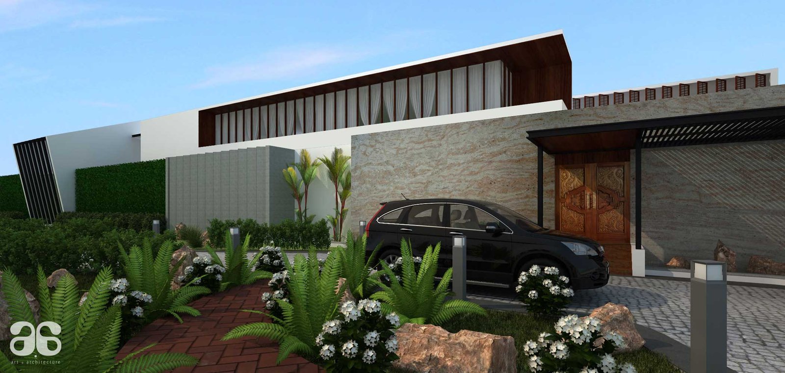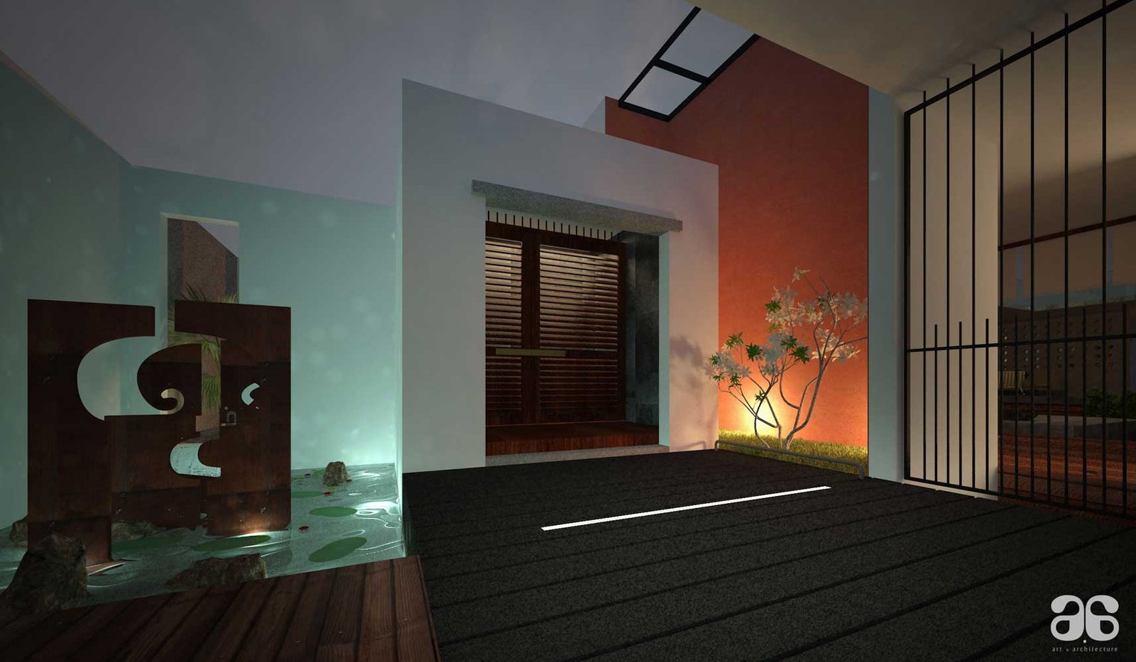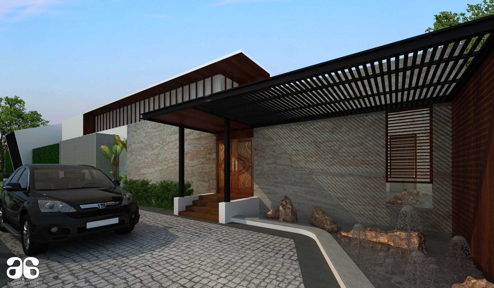 The house is a 9 bedroom bungalow for a joint family , The requirement was to build a house with a very posh and luxurious statement. Covering large areas , The spaces are designed to link with courtyards or gardens both inside the house and from outside. The pooja room comes with a specially designed water art installation which when squatted at three feet height appears to bring the alphabet Om in Tamil.The house comes with a partly covered swimming pool , hometheatre, dedicated garden for growing vegetables, gym and spaces for family activity and social life.